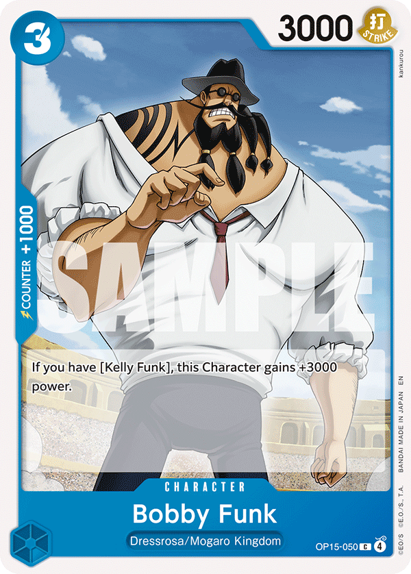 ![Bobby Funk – OP15-050 ADVENTURE ON KAMI'S ISLAND- [OP15-EB04] One Piece Trading Card](https://images.okonomi.one/defaultImages/onepiece/OP15-050.png)