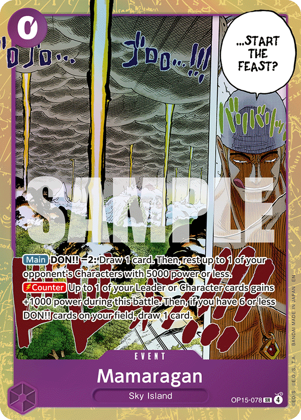 ![Mamaragan – OP15-078 ADVENTURE ON KAMI'S ISLAND- [OP15-EB04] One Piece Trading Card](https://images.okonomi.one/defaultImages/onepiece/OP15-078.png)
