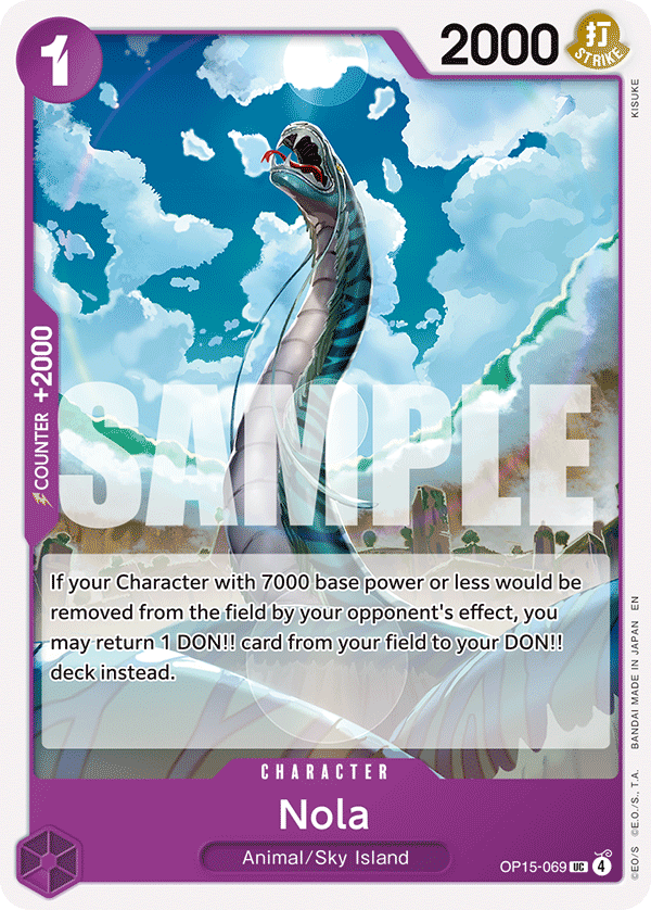 ![Nola – OP15-069 ADVENTURE ON KAMI'S ISLAND- [OP15-EB04] One Piece Trading Card](https://images.okonomi.one/defaultImages/onepiece/OP15-069.png)